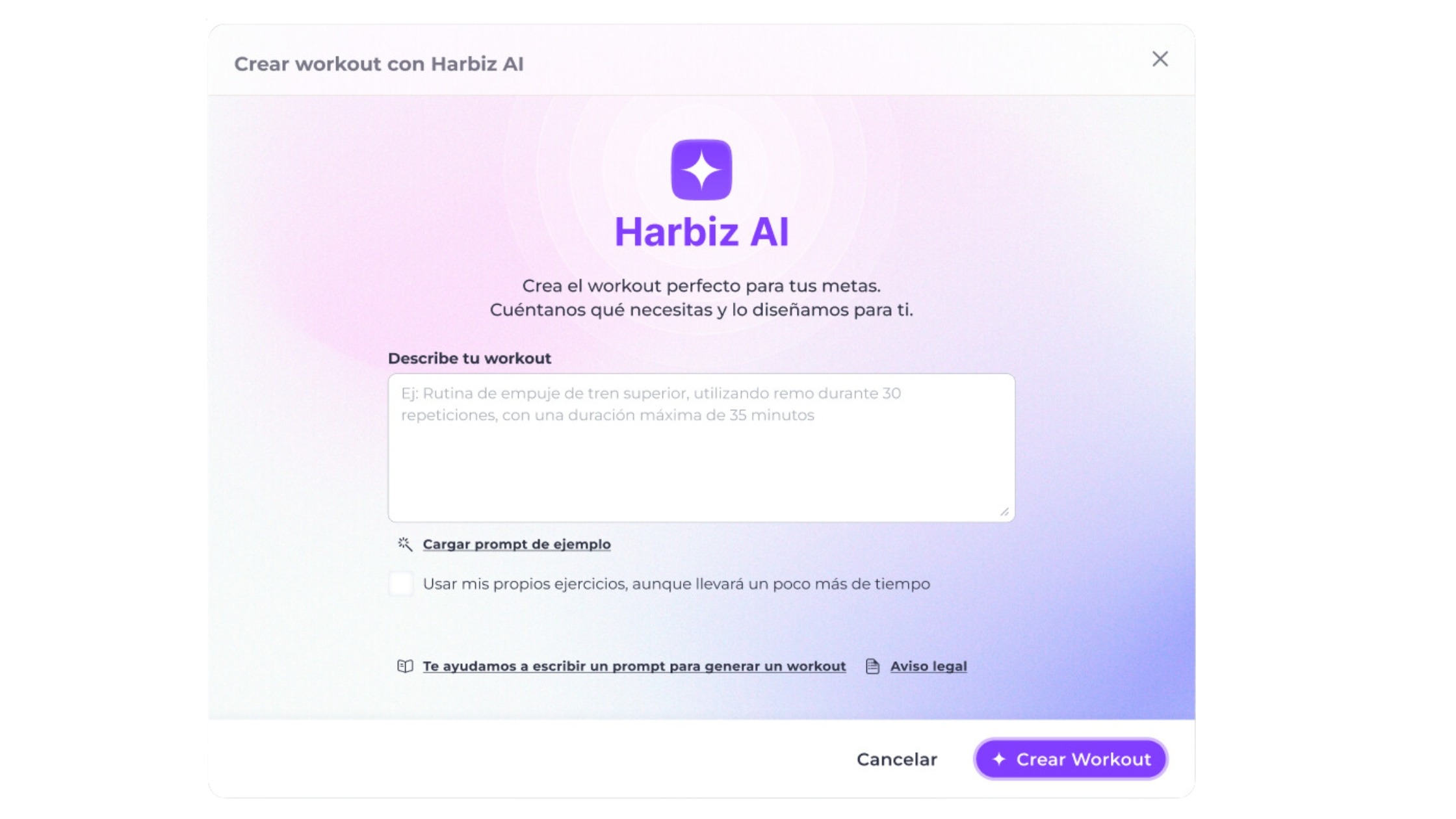 Uno de los cambios más valorados por nuestros usuarios ha sido la evolución del creador de rutinas. Hoy, puedes usar inteligencia artificial para generar workouts personalizados en segundos, simplemente indicando el objetivo, nivel y frecuencia del cliente.