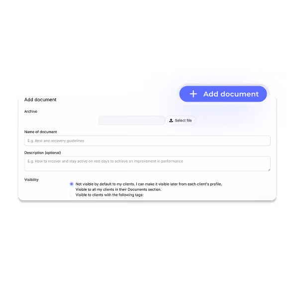 Übungen, Videos, Dokumente und Ressourcen in einer professionellen Inhaltsbibliothek, die Sie sofort mit Ihren Kunden verwenden können. Alles aufgeräumt, zugänglich und wiederverwendbar.