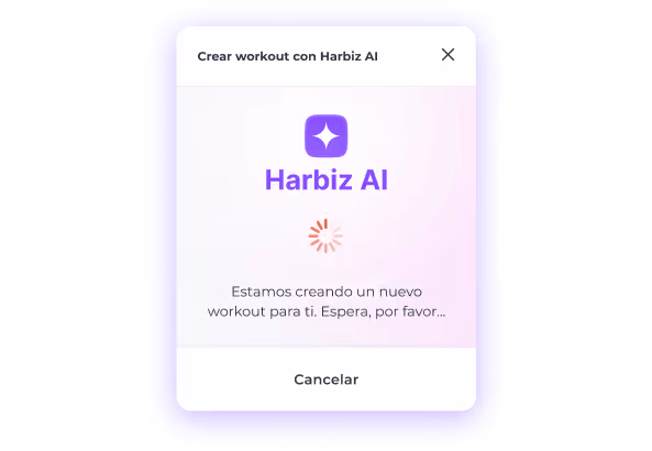 Geben Sie ein, was Sie benötigen, und Harbiz AI erstellt das Training für Sie mit den Übungen in Ihrer Bibliothek.