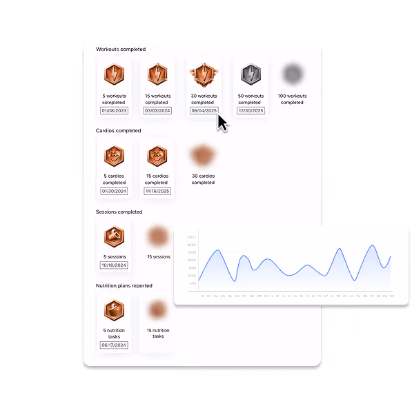 Monitor each progress visually with clear metrics and intuitive graphics. Show results, adjust plans and celebrate achievements to keep your customers always motivated.