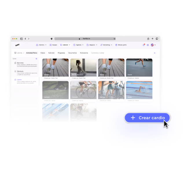 Utiliza cardios predefinidos o crea los tuyos propios objetivos específicos. Asígnalos fácilmente dentro de la planificación semanal o intégralos en tus programas.