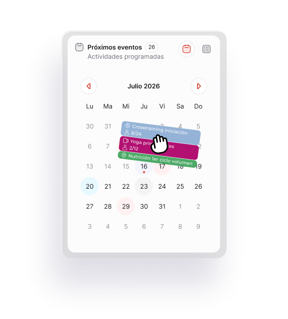 Añade tus propios eventos, sesiones y recordatorios. Visualiza tu planificación diaria, semanal o mensual y mantén todo sincronizado sin esfuerzo.