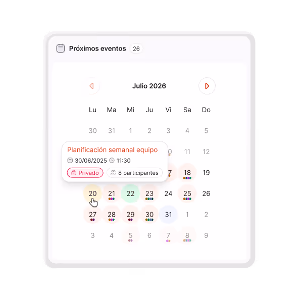 Consulta y distribuye la agenda de cada miembro de tu equipo. Asigna tareas, organiza disponibilidad y mantén a todos sincronizados con facilidad.