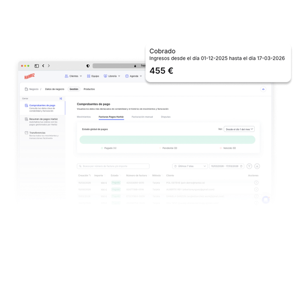 Genera facturas automáticamente cada vez que recibes un pago y mantén todo tu negocio organizado desde un solo lugar.
